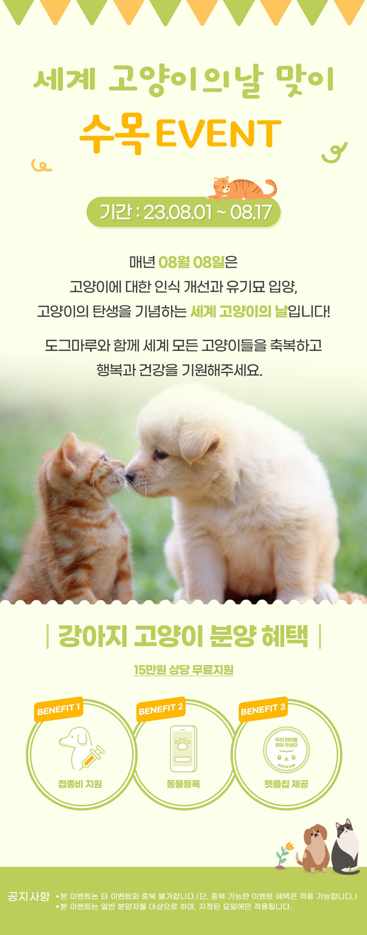 ✔ 접종비 / 동물등록 / 펫플칩 제공